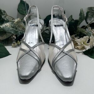 Stuart Weitzman Lame Dressy Pumps Size 8.5 Silver Matte Slingback Mesh Detail