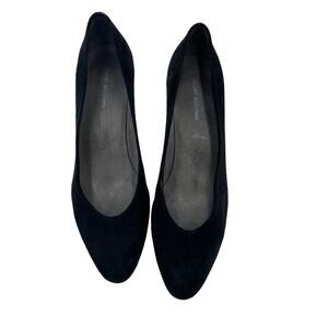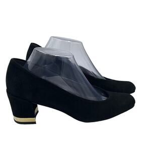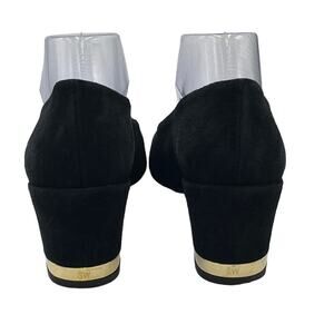 Stuart Weitzman Laney Black Suede Pumps Block Heel Gold Accent Comfort Sz 9 M