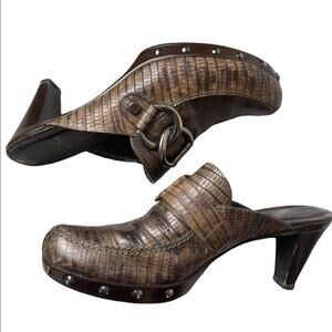 Stuart Weitzman Leather Croc Embossed Mules Clogs Shoes Women's Size 10