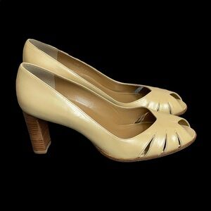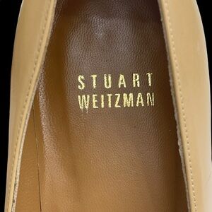 Stuart Weitzman Leather Heels Cut Out Vamp Almond Peep Toe Pump Tan 8.5M
