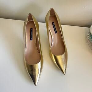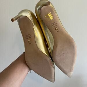 Stuart Weitzman Leather Metallic Gold Pumps 9.5