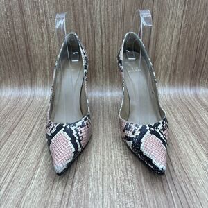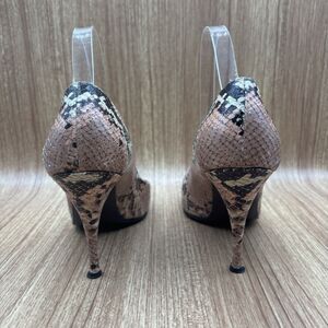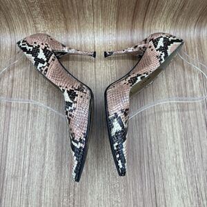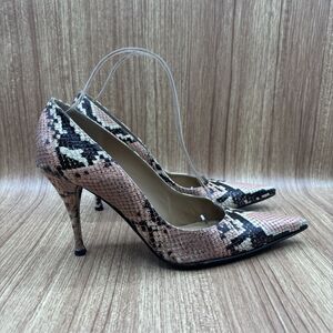 Stuart Weitzman Leather Snakeskin Print Size 9 Pointed Toe Pump Beige Pink Shoe