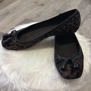Stuart Weitzman Leopard Calf Hair Black and Brown Ballet Flats