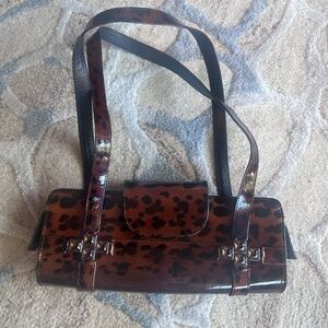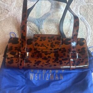 Stuart Weitzman Leopard Print Patent Leather Shoulder Bag