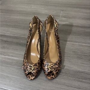 Stuart Weitzman Leopard Print Peep Toe High Heels Size 9