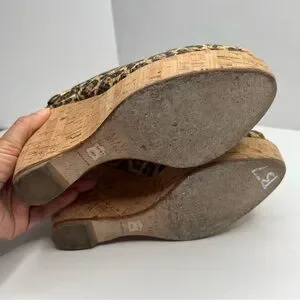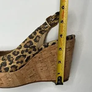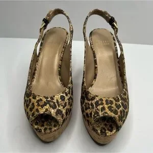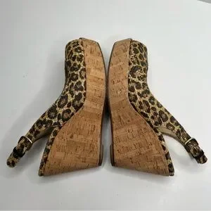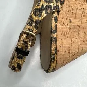 Stuart Weitzman Leopard Print Slingback Cork Wedge Size 7