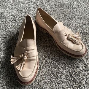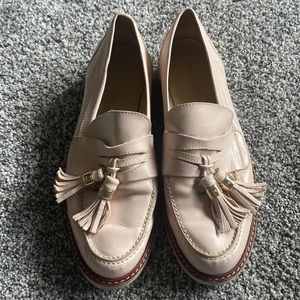 Stuart Weitzman Light Blush Pink Loafers Size 8. Good condition, they do show some signs of wear (a little bit of wear at the front tow area, each shoe has a mark under the tassel, and the leather shows some wear throughout. Please view all photos.