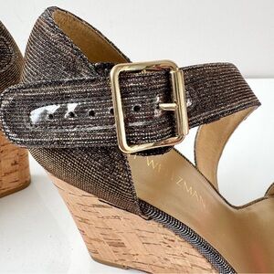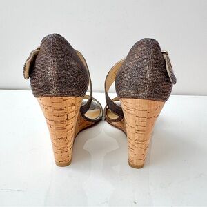 Stuart Weitzman Lineone Pyrite Nocturn Cork Wedge Ankle Strap Sandals Size 8 M