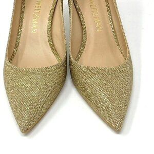 Stuart Weitzman Linsi 75 Pointed Toe Metallic Woven Pump Heels Rubber Sole NWB