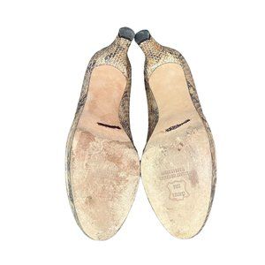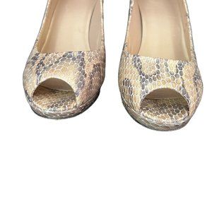 Stuart Weitzman Logo Plainfield Leather Snakeskin Peep-Toe Pump 9 Medium