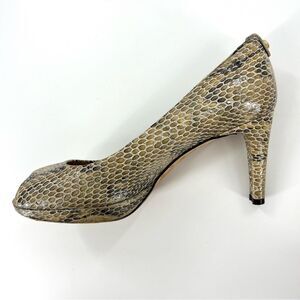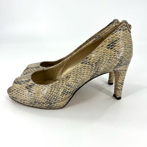 Stuart Weitzman Plainfield Snakeskin Peep-Toe Logo Pumps