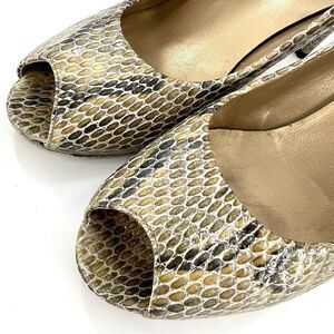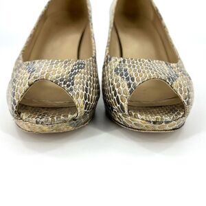Stuart Weitzman Logo Plainfield Snakeskin Peep-Toe Platform Pumps Mushroom