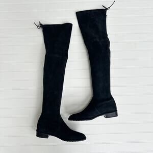 Stuart Weitzman Lowland Black Suede Over-the-Knee Boots Flat 1” Heel 7