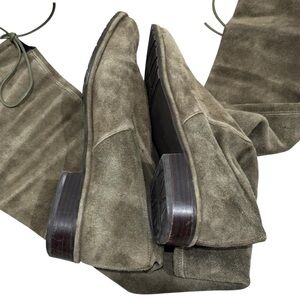 Stuart Weitzman Lowland Olive Green Suede Over the Knee Flat Boots Size 7.5