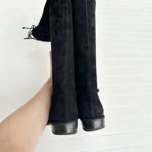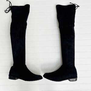 Stuart Weitzman Lowland Over-the-Knee Boots Black Suede Flat Tie Back 7.5
