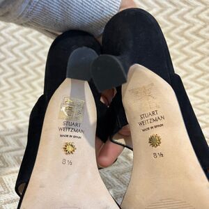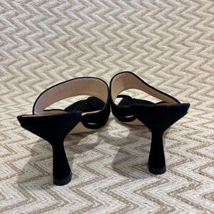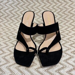 Additional Details: Black suede, square open toe, 3” heel, outer 100% suede, lining 100% leather