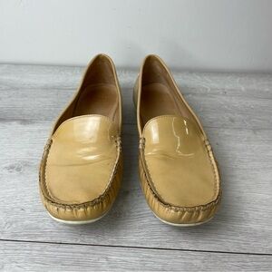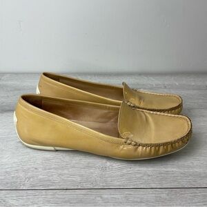 Stuart Weitzman Mach 1 Adobe Aniline Yellow-ish Tan Patent Leather Driving Loafers Size 9.5