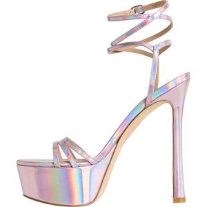 Stuart Weitzman's Soiree 145 platform sandals are just what you need to complete your special occasion look! Crafted from iridescent patent leather with a wraparound adjustable buckle strap and set on a 6-inch stiletto heel for show-stopping style.