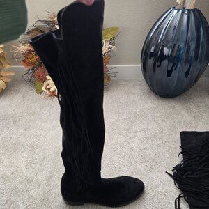 Stuart Weitzman Mane Black Suede Fringe Knee Boots 92127 | Size 7.5M