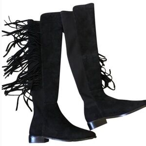 Stuart Weitzman Mane Fringe Black Suede Knee Boot size 6