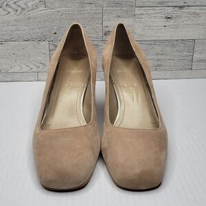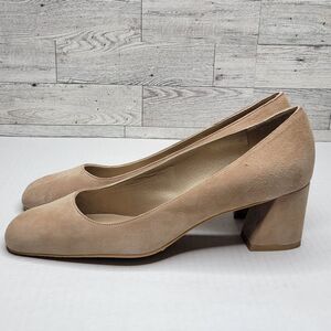 Stuart Weitzman Marymid Beige Suede Block Heel Pump 8.5 Career Money Minimalist