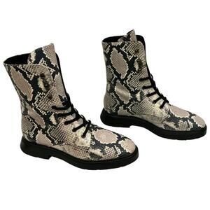 Stuart Weitzman, McKenzee boots, lace-up combat boots, python embossed leather, snake print boots, python, reptile, ankle booties, designer leather boots, chunky sole boots, trendy fall boots, women’s fashion boots, urban style footwear, real leather combat boots, moto boots, luxury ankle boots, black and ivory boots, snake skin boots, boots size 7, high fashion footwear, authentic Stuart Weitzman, casual, classic, festival, concert, leather lace up boots