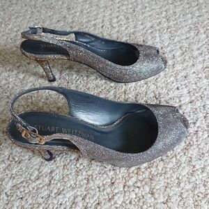 Stuart Weitzman Metallic Glitter Accents Slingback Sandals size 7M