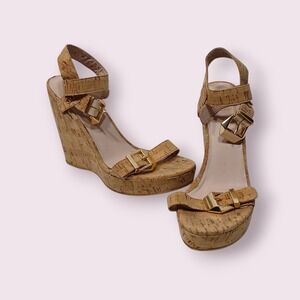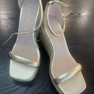 Stuart Weitzman Metallic Gold Wedge Sandals