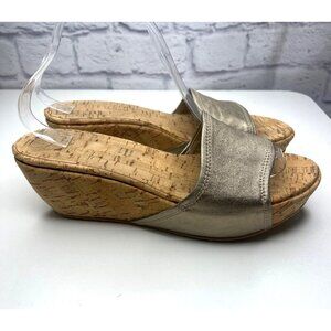 Stuart Weitzman Metallic Leather Wedge Sandals Slides Ladies Size 8.5M Cork