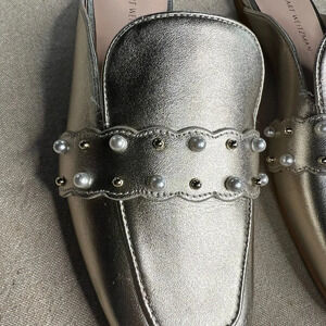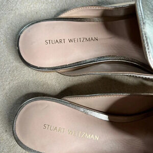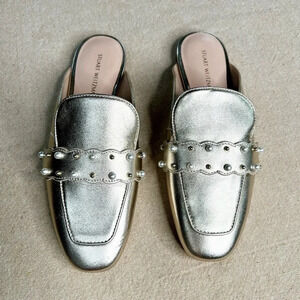 Stuart Weitzman Metallic Pearlstud Embellished Mules Size 4