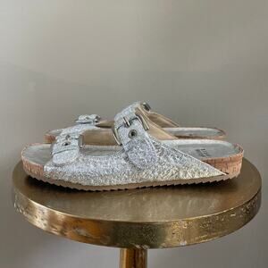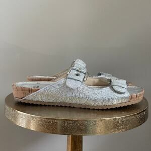 Stuart Weitzman Metallic Silver Leather Sandals | 6.5, Rare Birkinstock Style