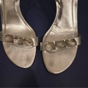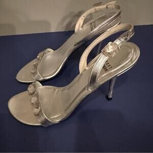 Stuart Weitzman Metallic Silver Strappy Sandals Heels Shoe barbiecore Size 9N