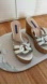 Chic metallic wedges with cork heel. Stylish and comfortable for any event. Has a silver / gold color.