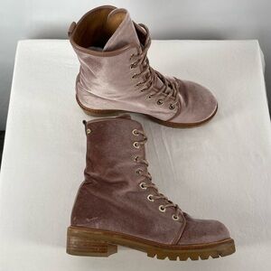 Stuart Weitzman Metermaid Velvet Combat Boots in Candy Pink Size 7.5