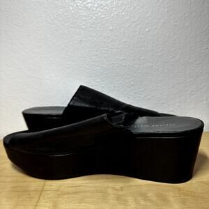 Stuart Weitzman Muletrain Wedge Sandals Leather Platform Wide Strap Black 9M