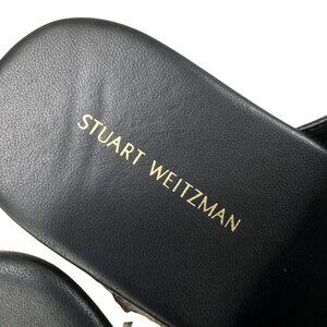 Stuart Weitzman Mykonos Two Strap Leather Espadrille Sandal Black Size 7.5