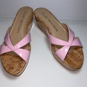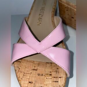 Stuart Weitzman NWOT Carmen Pink Platform Patent Leather Wedge Slide Sandals