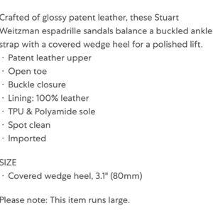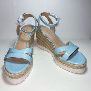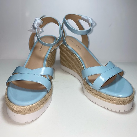 Stuart Weitzman NWOT Catalina Light Blue Espadrille Wedge Patent Leather Sandals