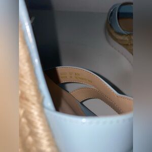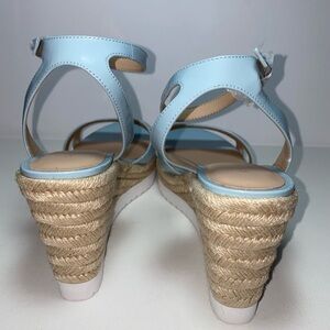 Elegant light blue Patent leather wedges with ankle strap. Perfect for casual outings. New without tags or box. I also have somewhat similar shoes in pink.