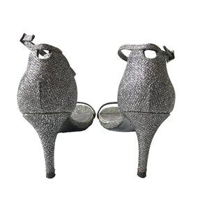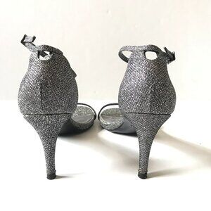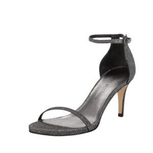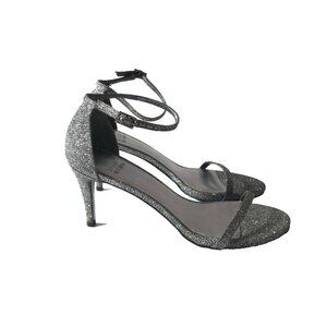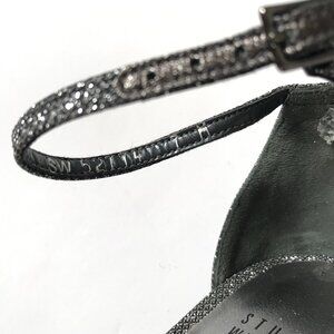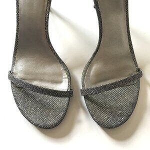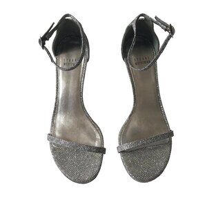 Stuart Weitzman Naked Glitter Sandals Heels Womens 7 Gray Pewter Leather Nudist