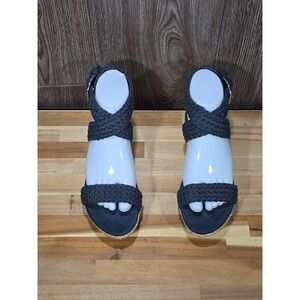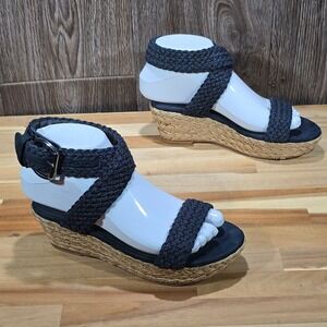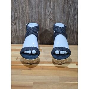 Stuart Weitzman Navy Blue Braided Espadrille Wedge Sandals Size 5M Boho