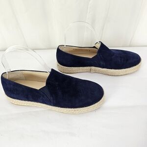 Stuart Weitzman Navy Blue Nugal Suede Espadrille Flats Platform Size 7.5
