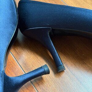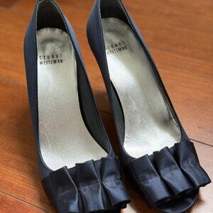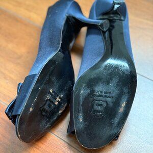 Stuart Weitzman Navy Satin Ruffle Toe Heel Size 6