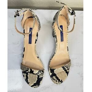 Stuart Weitzman NearlyNude Block Heels Snake Print Leather Sandals Heels Size 7