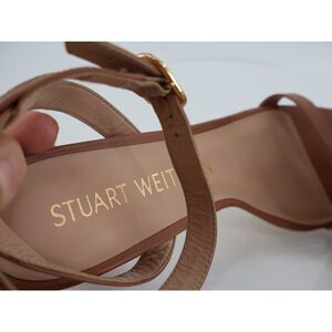 Stuart Weitzman Nearlybare Tan 75mm Block Heel Sandals Size 11B Brown Leather
