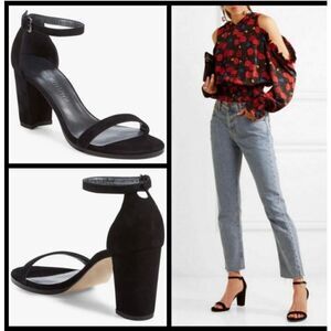 Stuart Weitzman Nearlynude Black Ankle Strap Sandals 10.5 M