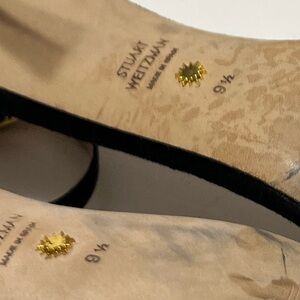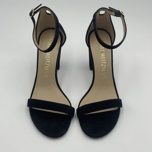 Stuart Weitzman Nearlynude Black Suede Heels Sandal SZ 9.5 EU 39.5 MSRP $630