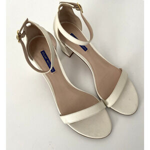 Stuart Weitzman Nearlynude Simple Sandal Open Toe Block Heel Off White Textur 10