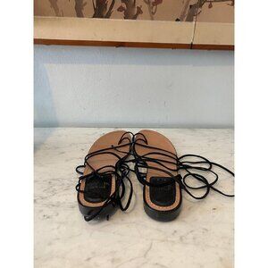 Stuart Weitzman Nieta Shoes Womens Size 8.5 Tan Black Lace Up Flat Leather Sanda