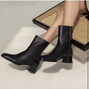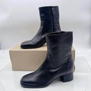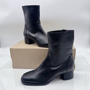 Stuart Weitzman Nola Zip Bootie Heeled Ankle Boots Black Leather US 6.5 - Spain